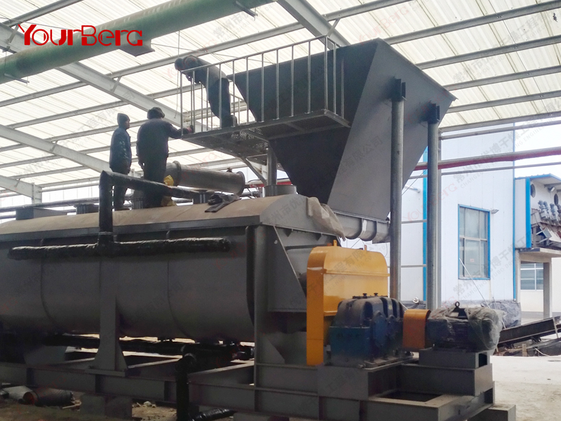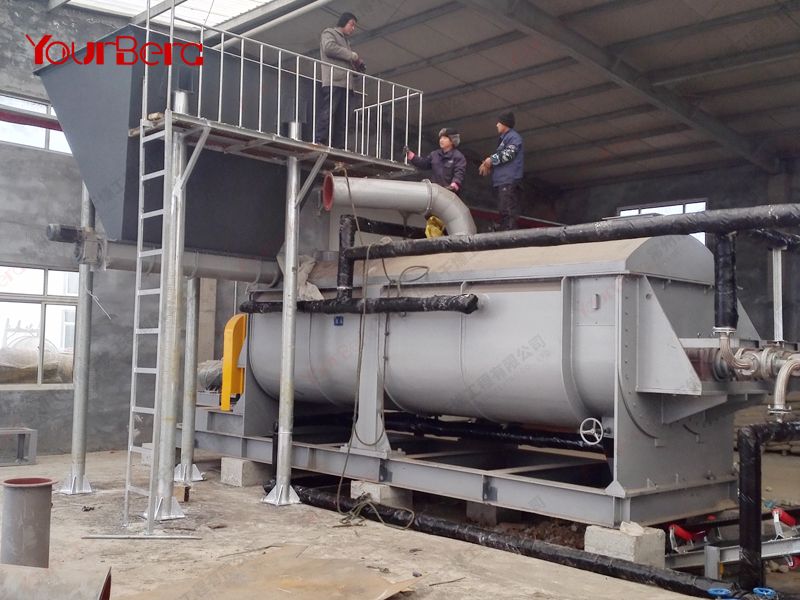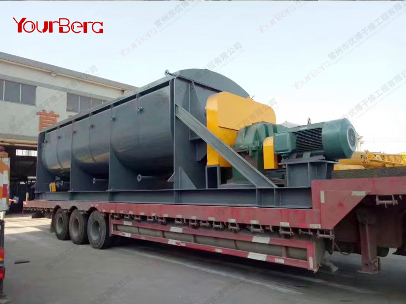 空心軸上密集排列著楔型中空漿葉,熱介質(zhì)經(jīng)空心軸流經(jīng)漿葉。單位有效容積內(nèi)傳熱面積很大,熱介質(zhì)溫度從-40℃到320℃,可以是水蒸汽,也可以是液體型:如熱水、導熱油等。間接傳導加熱,沒有攜帶空氣帶走熱量,熱量均用來加熱物料。熱量損失僅為通過器體保溫層向環(huán)境的散熱。楔型漿葉傳熱面具有自清潔功能。物料顆粒與楔型面的相對運動產(chǎn)生洗刷作用,能夠洗刷掉楔型面上附著物料,使運轉(zhuǎn)中一直保持著清潔的傳熱面。漿葉干燥機的殼體為Ω型,殼體內(nèi)一般安排二到四根空心攪拌軸。殼體有密封端蓋與上蓋,防止物料粉塵外泄而充分發(fā)揮作用。