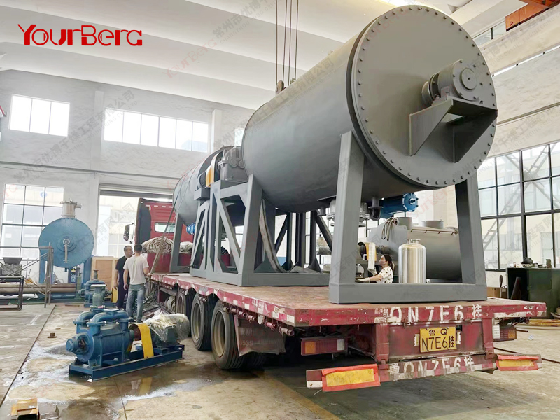 (1) 適應(yīng)性強(qiáng):應(yīng)用較廣,由于耙式真空干燥機(jī)利用夾套加熱、高真空排氣,所以幾乎對(duì)所有不同性質(zhì)、不同狀態(tài)的物料都適應(yīng),特別適應(yīng)易爆、易氧化、膏狀物料的干燥。